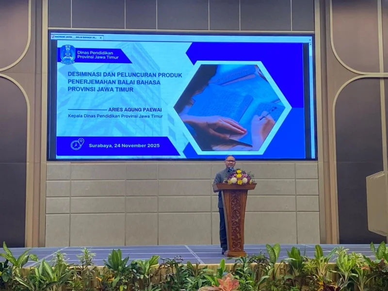 SURABAYA, 24 November 2025 – Badan Bahasa RI melalui Balai Bahasa Provinsi Jawa Timur meluncurkan 123 buku cerita anak dwibahasa pada Diseminasi dan Peluncuran Produk Terjemahan Tahun 2025, Senin (24/11), di Hotel Mercure Surabaya Grand Mirama. Kegiatan ini menegaskan komitmen penguatan ekosistem literasi sekaligus memperluas akses bacaan inklusif bagi anak-anak di Jawa Timur dan Indonesia.