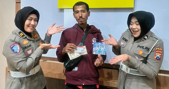 “Alhamdulillah saya dapat rezeki, terima kasih untuk jajaran Polantas Polda Jatim,” ucap Andio.